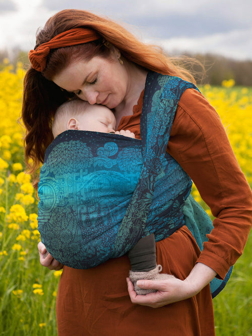 Dieser Stoff aus einer hochwertigen Mischung aus Bio-Baumwolle, Superwash-Cashwool und Bouretteseide vereint Weichheit, Festigkeit und Atmungsaktivität und eignet sich daher ideal für Babytragen, Ringschlingen, Schals, Überwürfe und vieles mehr. Die abwechselnd cremefarbenen und blauen Schussfäden und die skurrile Gartenbordüre erwecken Tolkiens Auenland zum Leben :contentReference[oaicite:5]{index=5}.