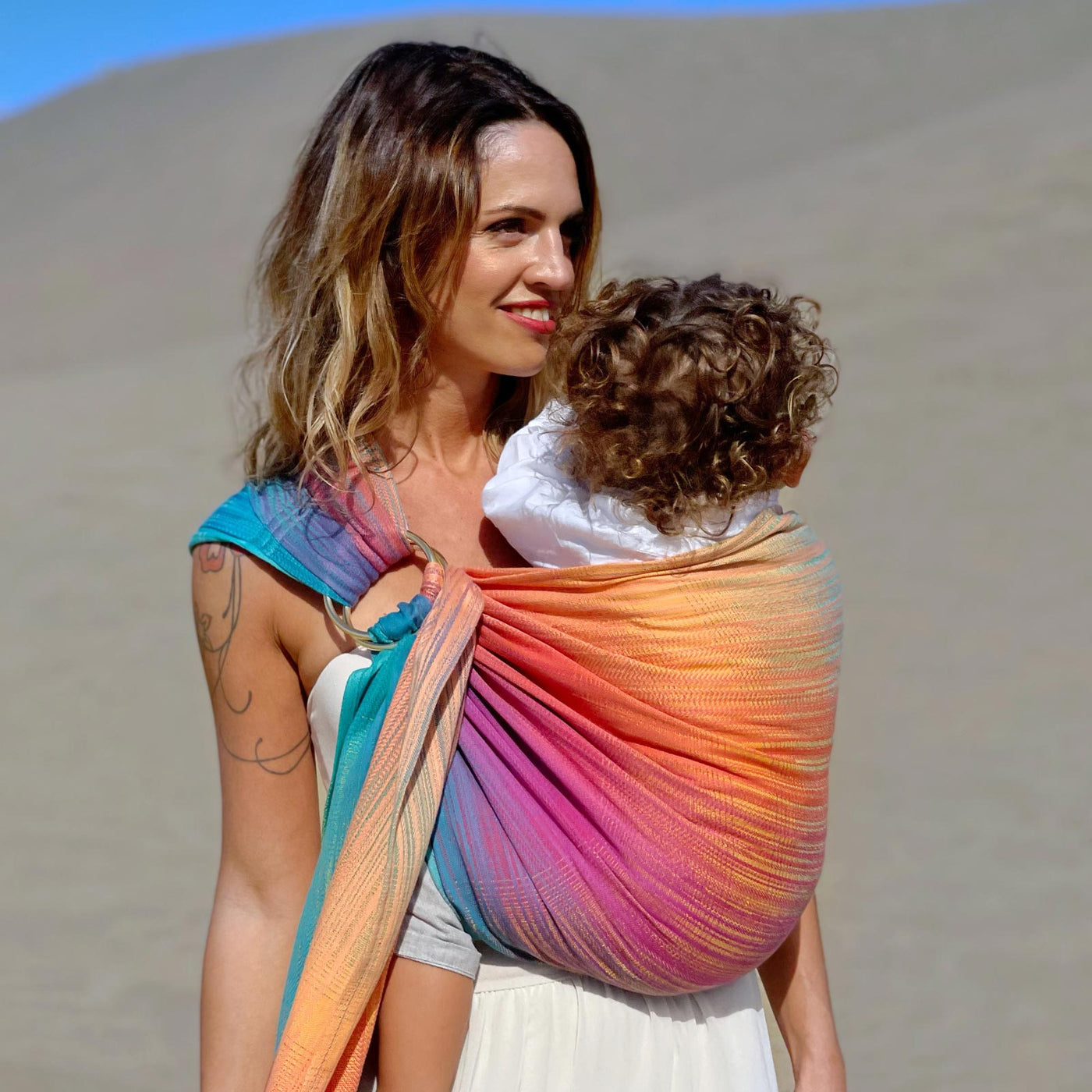 Oscha Ring Slings werden aus unserem speziell gewebten Tragetuchstoff gefertigt und zeichnen sich durch einzigartige handgezeichnete Designs aus. Die Schlinge wird durch einen Satz sicherheitsgeprüfter Ringe an der Schulter befestigt. Sie sind bequem und schnell zu bedienen, haben eine kurze Lernkurve und sind ideal für Kinder, die gerne oft auf und ab gehen.