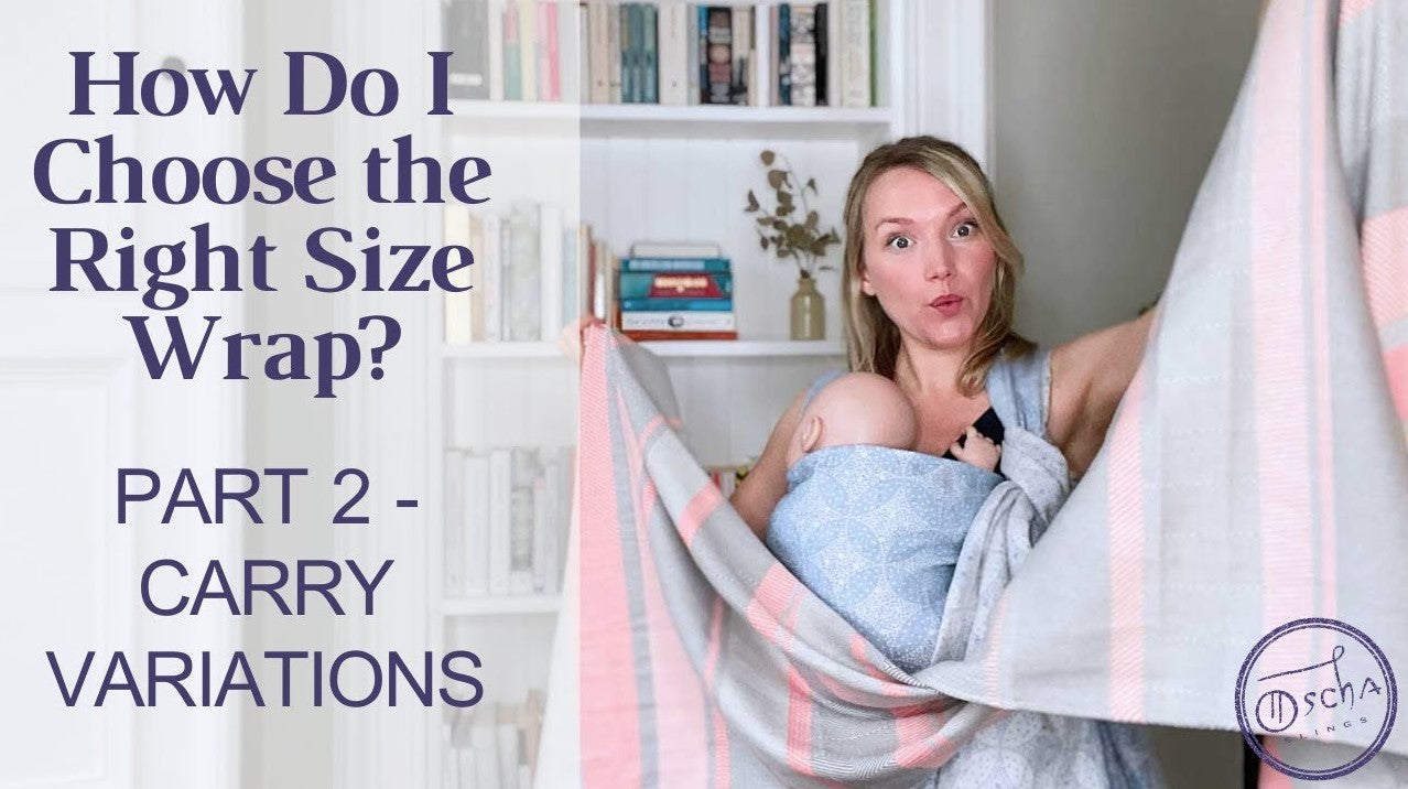 Gewebte Tragetücher gibt es in verschiedenen „Größen“ (normalerweise 2–8). Jede Größe hat eine bestimmte Stofflänge, die für verschiedene Trageweisen verwendet werden kann.