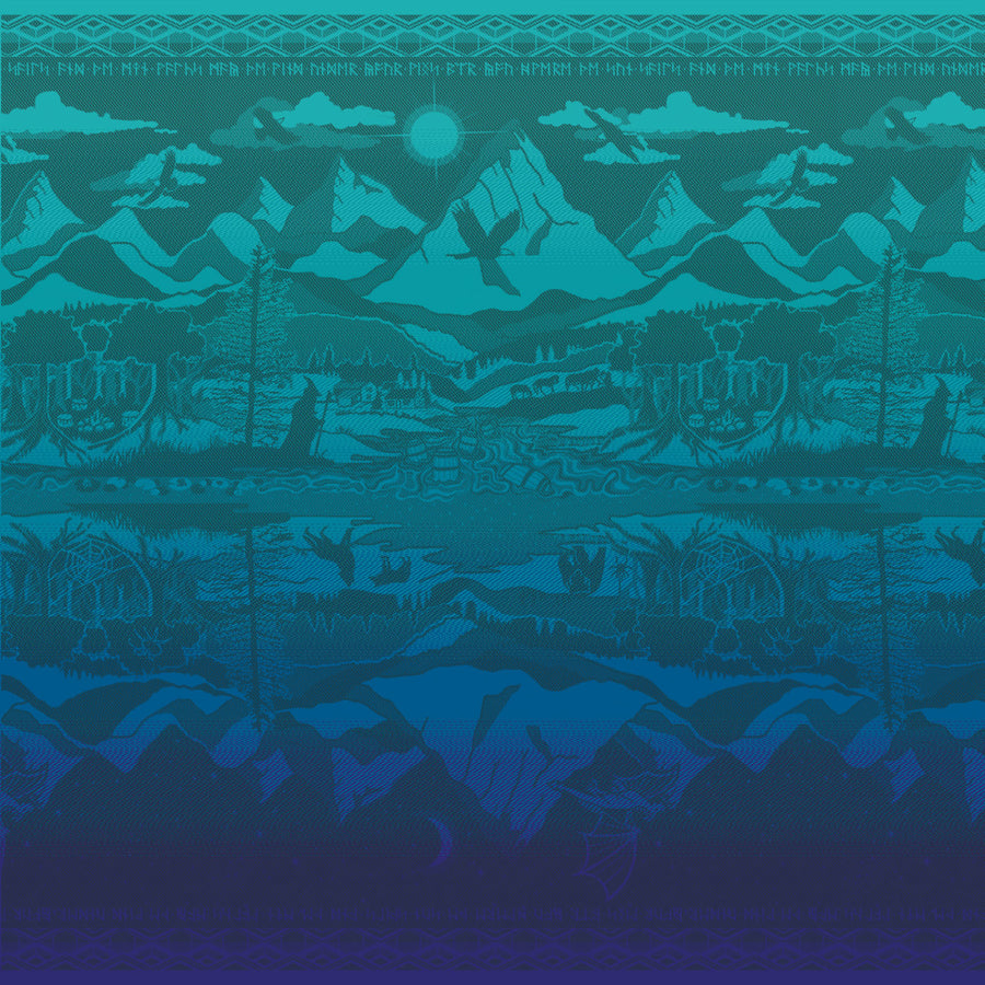 Entdecken Sie „Hobbit Quest“ auf diesem Ocean Fade-Kettfaden mit einem tief blaugrünen Hanfschussfaden, der speziell von der norwegischen nationalen Sling Meet-Gruppe ausgewählt wurde.